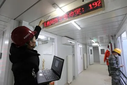 每天去现场转几圈,总是能看到几个“区长”和“组长”,虽然大家戴着口罩,但也能一眼认出谁是谁。抢险大队大队长杨金钟嗓子一直哑着,天天深夜转现场;李峰48小时连轴转后累得眼睛通红,开完晚上协调会,又去了现场;罗科庭有着急吼吼的脾气,他把雄安的“城建加速度”带到了小汤山,所负责的区域最先干完;焦涵之负责最难的一个区域,一向温文尔雅的他居然也会骂人;压力不小的是邹浩然,9部电梯已经够挠头了,倒计时100小时又揽了个大活儿——屋面;刘杰既顾着后勤又负责园林绿化,见缝插针地抢地盘施工;杨晓瑞也从经营转生产了,时时刻刻都在现场转;任国振是个踏实认真负责的“小黄牛”,一件一件地解决后勤杂事儿;安琪虽然是一名女同志,韧劲儿上来,一点儿不输男同志;陈民生、杨东闸也是在现场见到最多的人,坚守自己的岗位;齐如刚迎来送往,还兼职摄影师,给自己定了“每天拍出9张让自己满意的照片”的小目标。