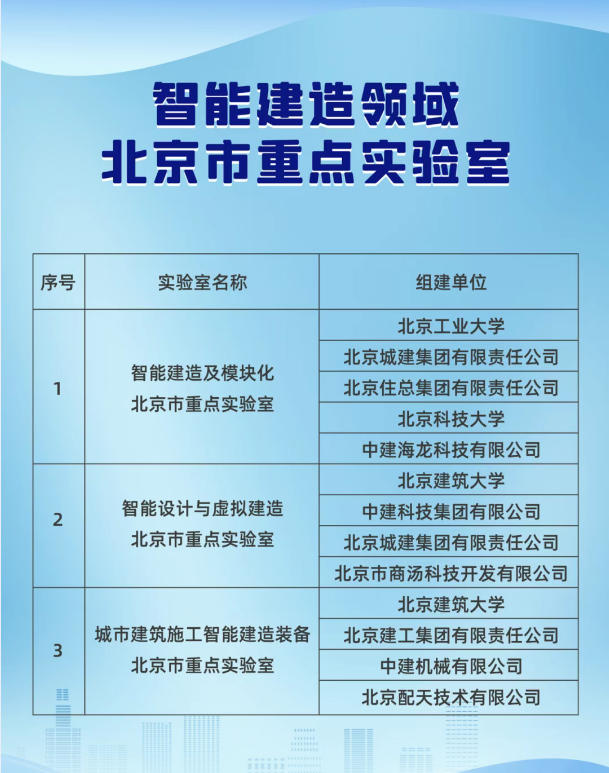 北京市重点实验室是北京市科技创新体系的重要组成部分,是集聚培养使用优秀创新人才、开展高水平科研活动的重要科技创新基地。市住房城乡建设委积极推动智能建造纳入北京市重点实验室重点布局领域,并研提重点攻关方向,推动智能建造科技发展融入北京国际科技创新中心建设大局。此次布局的3家实验室分别聚焦智能建造不同细分领域,形成了互补协同的创新格局,将为我市智能建造发展提供重要技术支撑。