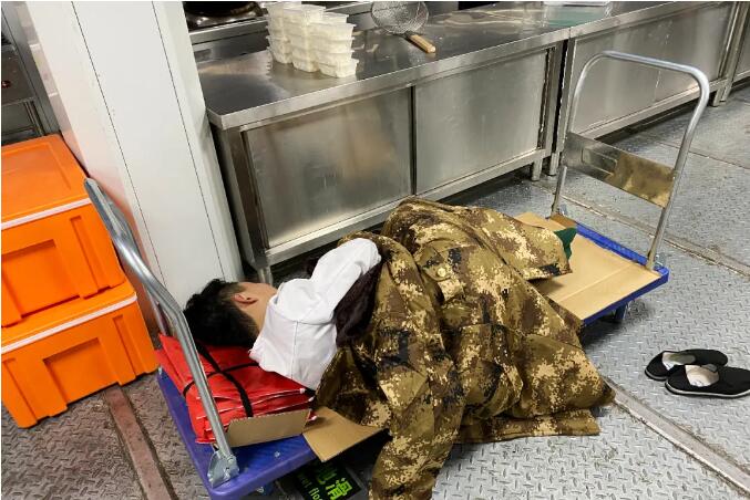 领导和管理人员时刻挺在一线,靠前指挥,很多人连续十几天每天只休息2-3个小时,挑战着生理极限。饿了,抓几块高甜度的士力架就当作了一顿饭。困了,就在车上或者靠着物资眯几分钟继续战斗,夜深了,才有机会和家人通上几句话,互道一声平安。