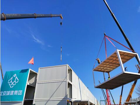 2月21日,新建工程安装完1440间箱式房,房屋内隔断板、走廊板安装、通廊焊接完成100%;